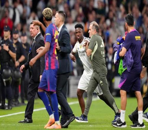 因此,新仇舊恨雙方比拼必定是帶著火藥味的。在比賽打完后也是和皇馬的隊(duì)長卡瓦哈爾、主力維尼修斯等人發(fā)生了激烈的沖突,這也引發(fā)了拉菲尼亞、阿勞霍等多名主力參與其中。當(dāng)然,主要的目的是為了保護(hù)他,不要讓這個(gè)沖突變得越發(fā)的大。